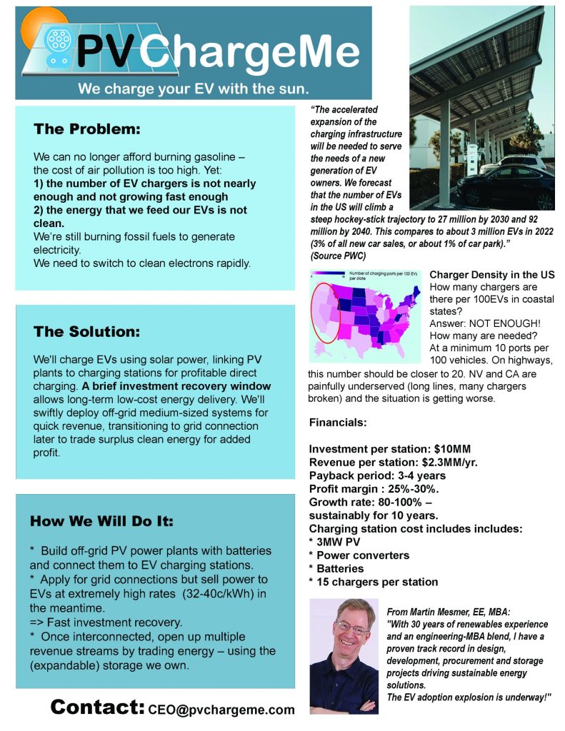 At PV ChargeMe, we have developed a unique model that addresses this issue by providing EV charging stations with 100% Renewable Energy.